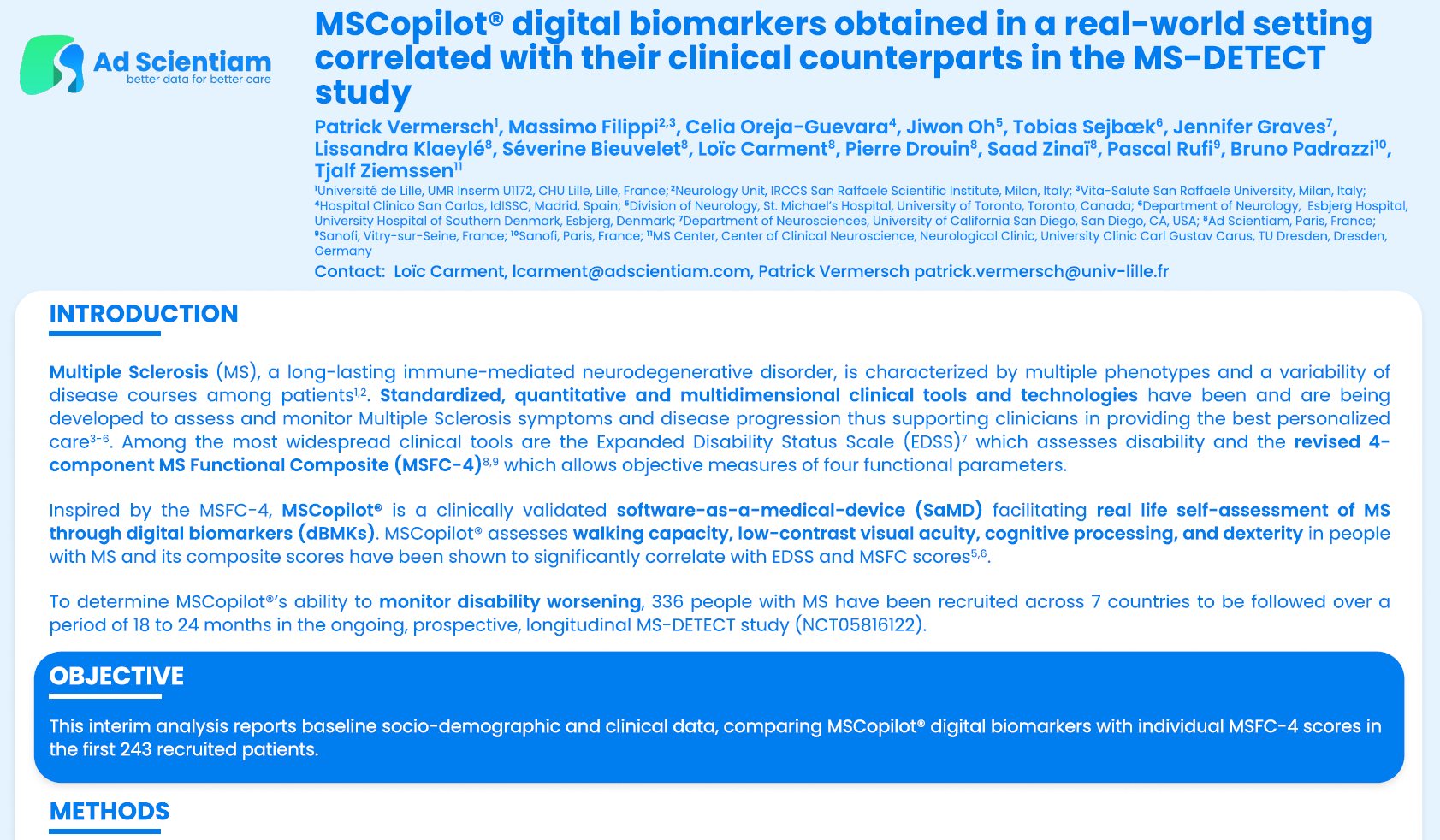 MSCopilot® Digital Biomarkers Obtained in a Real-World Setting Correlated with their Clinical Counterparts in the MS-DETECT Study